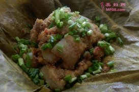 食材介绍 五花肉 , 大米 , 八角 等香料, 豆瓣 酱 , 醪糟 , 荷叶 荷叶粉 蒸 肉的做法步骤 1. 五花肉用豆瓣酱,醪糟腌制 2. 大米和香料放锅里煎至变黄就可以了,料理机打碎 3. 米粉 和肉拌匀 4. 拌匀的 蒸肉 放进荷叶 5. 用荷叶把肉包起来,入蒸锅,蒸40分钟 6