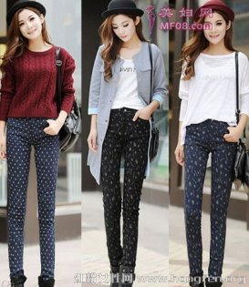冬款加绒紧身牛仔裤 穿得温暖又显腿型