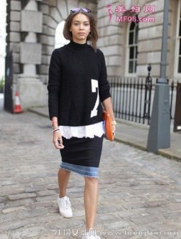 个性设计针织衫玩转各种造型 抛开基本款也很有范儿 廓型高领针织衫+半身裙+尖头高跟鞋+手包 说说造型:粉嫩蓝色跟白色半身裙搭配减龄纯净;廓形的上衣遮胖,半裙大方优雅;职业装,聚会两相宜的通勤装扮。副标题 个性设计针织衫玩转各种造型 抛开基本款