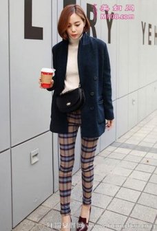 呢大衣+铅笔裤显瘦穿法 让你寒冬变身轻盈苗条小美人 呢大衣+高领毛衣+格子铅笔裤+尖头鞋 时尚指数:★★★★★ 穿着看点:深蓝色的呢大衣+白色高领毛衣+格子铅笔裤+尖头高跟鞋+斜挎包,复古又十分干练的穿着,一点都不显臃肿,而且给人很温暖的feel。副标