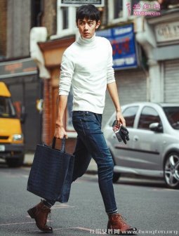 欧美风男装搭配休闲又绅士 时尚男生服饰魅力穿搭技巧 高领毛衣+牛仔裤+马丁靴 高领毛衣是今年的流行单品,纯白色高领毛衣搭配牛仔裤,将裤腿稍微卷起,穿双欧美风马丁靴,简约又有型的欧美男生服装搭配。副标题 欧美风男装搭配休闲又绅士 时尚男生服饰