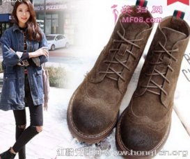 冬季系带马丁靴穿搭术 轻松打造随性帅气造型 【咖啡色冬季系带马丁靴】 镂空的冬季系带马丁靴,经典绑带式的版型设计,穿得很潮流也经典,咖啡色的绒毛马丁靴,搭配破洞裤子,造型酷酷哒~~副标题 冬季系带马丁靴穿搭术 轻松打造随性帅气造型 【枣红冬