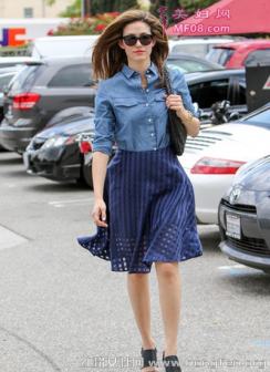 秋季宽臀MM如何穿衣搭配? 选对裙装打造性感身材 【搭配示范】:牛仔衬衫+条纹半裙+高跟凉鞋+单肩包 ▲蓝色搭配很和谐舒服,但是又搭出了层次感,这种飘逸A裙很适合宽臀的美眉。副标题 秋季宽臀MM如何穿衣搭配? 选对裙装打造性感身材 【搭配示范】:白