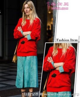 秋冬针织衫舒适百搭单品 6种穿搭技巧教你一周不重复 红色镂空针织衫+衬衫长裙 ▲穿搭TIPS:红配绿也想搭出逼格,就看你有没有一颗追求时尚的心啦。不同的质感加上斑驳的湖水蓝一点也没有违和感,这样撞色才好看。副标题 秋冬针织衫舒适百搭单品 6种穿
