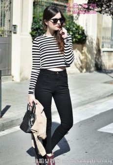 秋季高腰裤百搭各种上衣 增高显瘦旅行必备单品 【小编小评】休闲条纹上衣,短款小露胃,完美身材比例轻松有。搭配T恤 搭配技巧:条纹长袖T恤+黑色高腰牛仔裤+酒红色短靴+黑色手袋副标题 秋季高腰裤百搭各种上衣 增高显瘦旅行必备单品 【小编小评】小编