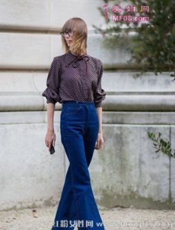 萝卜腿穿什么裤子显瘦? 4裤1裙穿法轻松拥有大长腿 喇叭裤今年有会潮的迹象,而且宽宽的裤脚能把萝卜腿的事实掩盖起来,向这位达人搭配同样复古的系带衬衫,乖巧又复古优雅。 搭配技巧:紫黑色格子衬衫+牛仔喇叭裤+褐色厚底高跟鞋副标题 萝卜腿穿什么裤
