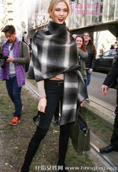 披肩单品柔软可塑性在冬季最实用 今年最流行的穿衣搭配技巧 高领格纹披肩+短装上衣+窄脚牛仔裤+过膝长靴 说说造型:格纹的呢子跟皮滚边很摩登, 搭单肩像围巾,放下来像大衣斗篷一样。过膝长靴包腿的穿法把大长腿的线条展现的比原来的看起来更长; 长腿MM冬天可