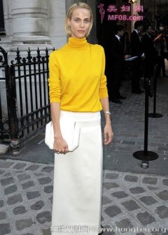 亮色姜黄单品秋季闪耀夺目 时尚百搭服饰告别沉闷季节 造型示范:姜黄高领长袖上衣+白色直筒长裙+白色手包+黑色凉鞋 百搭的白色,跟姜黄色搭在一起,不仅能让你足够耀眼,亮色与浅色的搭配还能显得身材十分高挑哦!副标题 亮色姜黄单品秋季闪耀夺目 时尚