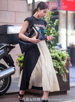 经典百褶裙怎么搭都耐看 简约时尚风格打造完美造型 搭配要点:T恤+百褶裙+尖头高跟鞋 印花图案的T恤卡通又充满童心,搭配优雅的拼色百褶裙,活泼的时尚感娓娓道来。副标题 经典百褶裙怎么搭都耐看 简约时尚风格打造完美造型 搭配要点:墨镜+抹胸百褶裙