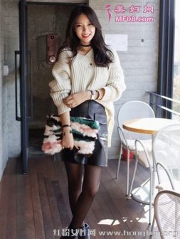 毛衣+高腰裙显高显瘦 矮个子女生秋冬季穿衣法则 米色毛衣宽松慵懒范,v领设计,廓形落肩款式,随意又时尚,配黑色高腰皮裙,营造出胸以下全是腿的视觉效果,显高还不简单么?副标题 毛衣+高腰裙显高显瘦 矮个子女生秋冬季穿衣法则 粉色毛衣毛茸茸的看着