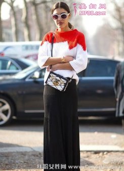 换季毛衣御寒时髦穿搭术 经典不败单品展现时尚造型 搭配示范:白色撞色毛衣+黑色直筒裙+白色单肩包+白色太阳镜副标题 换季毛衣御寒时髦穿搭术 经典不败单品展现时尚造型 搭配示范:撞色高领毛衣+蓝色休闲背带裤+棕色时尚单肩包副标题 换季毛衣御