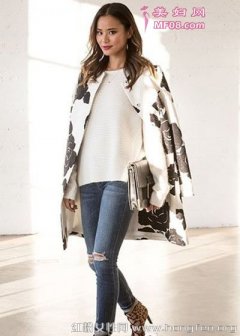 矮个子女生穿衣搭配技巧 视觉显高让小个子脱颖而出 穿衣技巧:白色玫瑰印花大衣+白色兔毛短款套头毛衣+蓝色破洞铅笔牛仔裤+豹纹鱼嘴高跟鞋+银白色手拿信封包副标题 矮个子女生穿衣搭配技巧 视觉显高让小个子脱颖而出 穿衣技巧:咖色斗篷风衣+黑色漆皮
