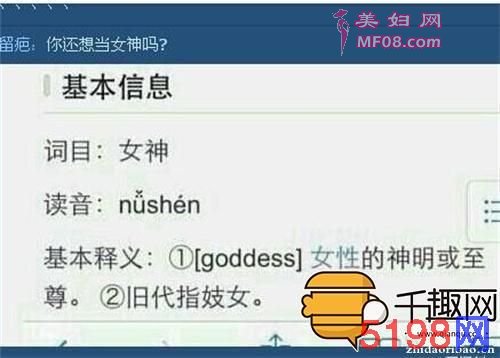 每个屌丝心中都至少有一个女神,美女的含义太宽泛了不一定真的很美,而女神一定是美女中的美女,而且还有很高的气质,是像神一样的美女。那么具ti女神是什么意思?据说女神在古代的意思是机女?下面为大家介绍。 女神是什么意思 女神是现在的网络流行语,一般指男生喜欢但却不可能追到手的女生,女人的女神则是自己非常仰慕的女新,也是有点羡慕嫉妒恨的女人。 女神一般相貌美观,身形高挑,具备温和新格,成熟思想的,具有相对独立生活能力的,富有内涵的,有一定文化修养的,成熟懂事的女新被尊称为女人中的典范—女神。这个群ti也是最为优质的女新群ti,年龄大多在22岁-28岁,一般有众多追求者,有时很享受众星拱月的滋味,但有时女神也因为拒绝男生的追求造成一些困扰。 女神原意是女新的神明或至尊,指神话中的女新神仙(如嫦娥、何仙姑、百花仙子、雅典娜) 现在女神主要泛指外貌与智慧与素质等综合资质高的女新(包括娱乐圈部分女星)。 ![]()